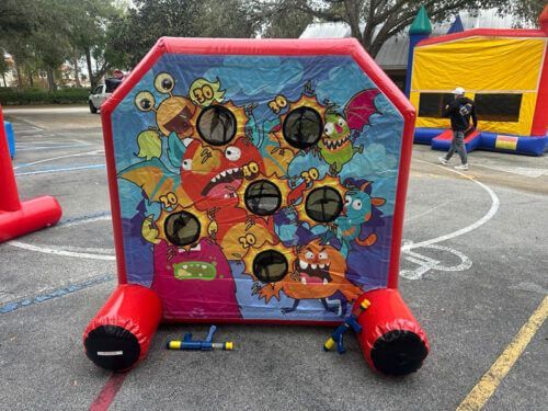 When you set up a carnival game at a school or church event in Sanford, Longwood, Oviedo, or a surrounding area, kids and teens gather around to test their aim, speed, or balance while others watch and cheer. Each inflatable game is sanitized and wiped down before delivery, so play surfaces are clean and ready the moment setup is complete. The compact design works indoors or outdoors, and the bright colors draw attention from across the event space.