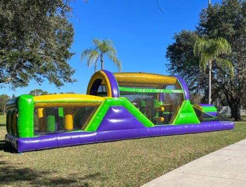 When you set up an obstacle course at a school field day or youth group gathering in Sanford, Deltona, Lake Mary or a surrounding area, participants line up to race through tunnels, climb over walls, and slide down the final ramp while teammates shout encouragement from the sidelines. Each unit is fully cleaned and sanitized after every rental, so the surfaces are safe and ready when the blower powers on. The dual-lane design increases throughput, letting two competitors race side by side and keeping lines moving even during peak hours.
